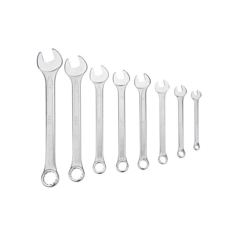 Clés mixtes, 8 pc, finition satinée, décalage de la tête polie à 15°